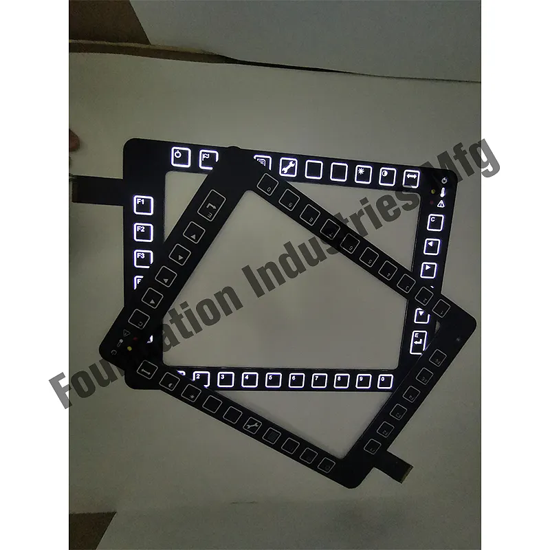 LGF is a thin plate that for help the side-firing LEDs illumination the switch. The LGF switch is like a mobile phone, the mobile phone screen can be lighting the whole screen, the LGF switch can be lighting the text/patterns that you want to. Adding the backlighting design to the switch make it easier for users to interact with the membrane switch. It help the membrane design to be more advance、multifunction and beautiful, the users is more like a such kind control switch.